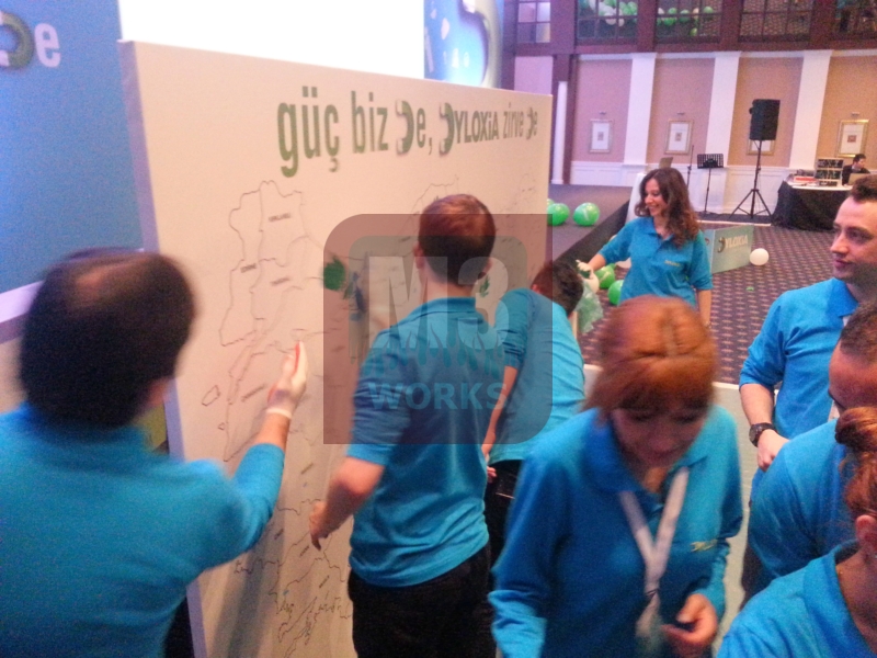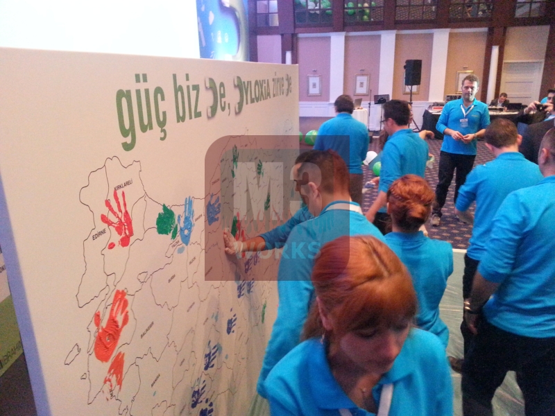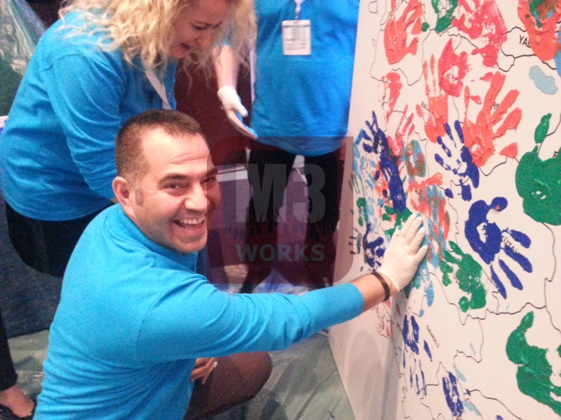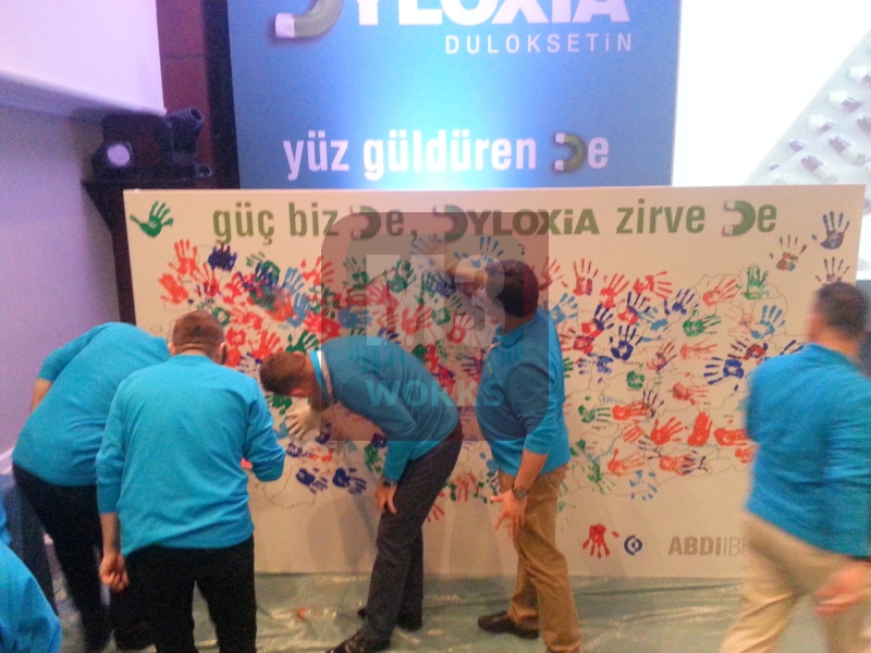 M3 Works olarak Abdi İbrahim ile gerçekleştirdiğimiz Elbirliği Tablosu etkinliğinde çok renkli ve eğlenceli anlar yaşandı. 63 katılımcının yer aldığı aidiyet duygusunu geliştiren ve çalışanlar arası bağları kuvvetlendirmesiyle bilinen bu etkinlik sayesinde Abdi İbrahim çalışanları arasındaki iletişim farklı bir boyut kazandı. Crowne Plaza İstanbul Asia Hotel’de gerçekleşen etkinlik konferans arasında çalışanları motive etmek ve enerjilerini artırmak için düzenlenen Elbirliği Tablosu etkinliğiyle iş birliği ve takım çalışmasının güzel bir örneği sergilendi. Rengârenk boyalar içerisinde kendi zevklerine ve yaratıcılıklarına göre renkler seçen katılımcılar ellerini boyalara batırdıktan sonra tabloda silinmeyecek izler bıraktılar. Kolayca çıkabilen boyalara ister çıplak elle ister eldivenlerle ellerini batıran katılımcılar tabloyu renkli görsel bir şölen haline dönüştürdüler. Rengârenk boyalar arasında çocukluklarına dönen katılımcılar tablo bütünlüğü bozmamak ve uyumlu bir çalışma sergilemek için takım halinde başarılı bir performansa imza attılar. Birlik ve beraberlik mesajının en iyi örneği olan Elbirliği Tablosu atölyesi sayesinde takım ruhu gelişirken, katılımcılar gün boyu süren toplantının stresini de atmış oldular. Antalya’da düzenlenen etkinlik süresince kuvvetlenen iletişim bağı ve takım ruhu firmanın iç motivasyonuna katkı sağlarken, katılımcıların yaratıcılıklarının gelişmesine de katkı sağladı.