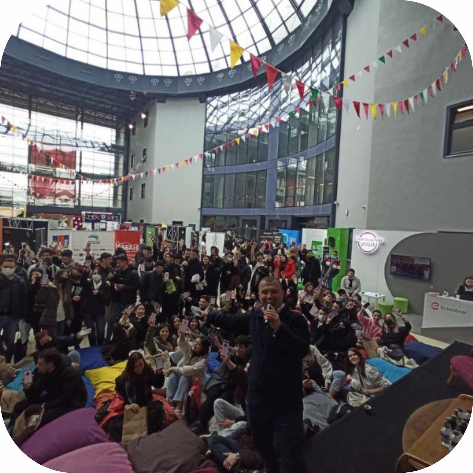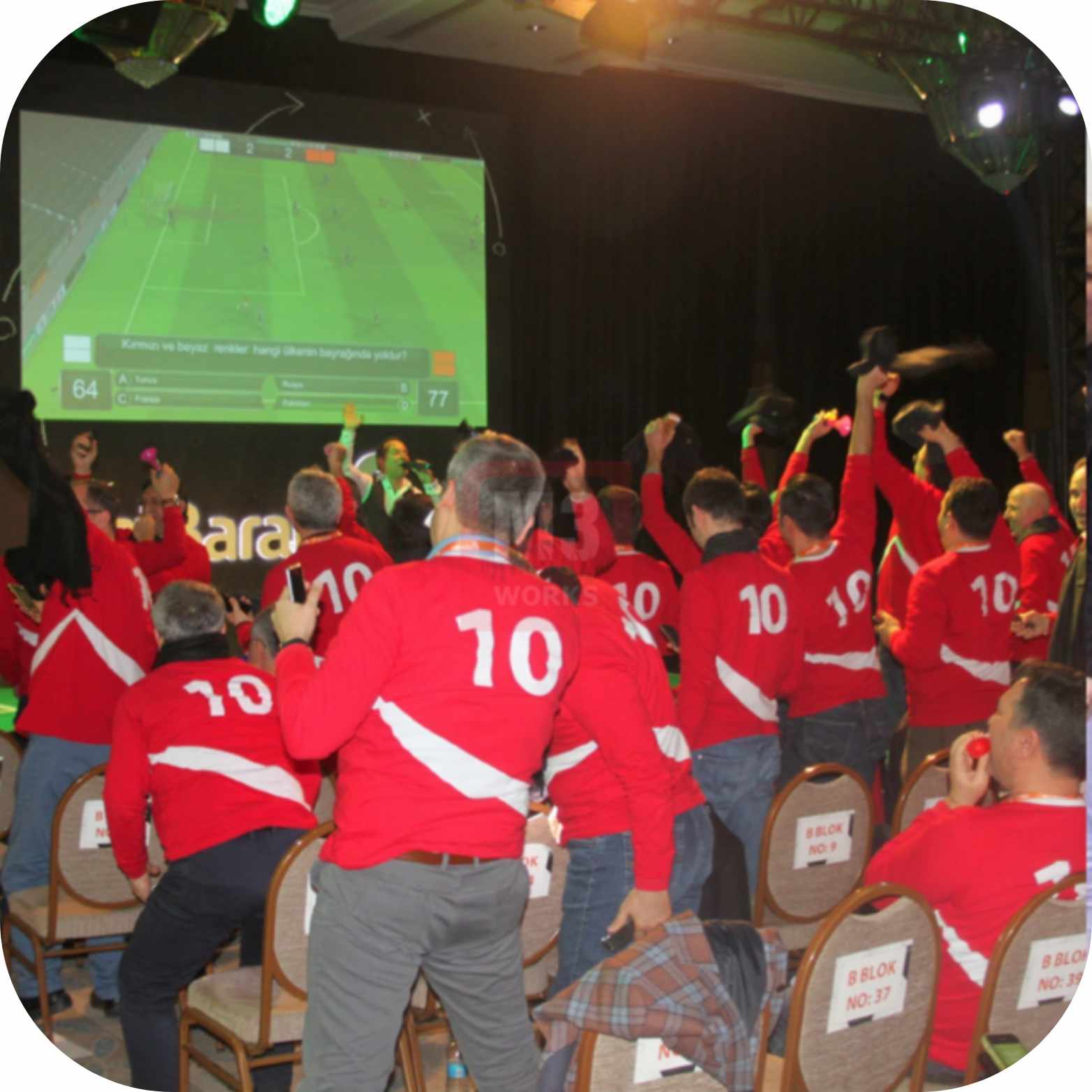 Bilgimaç, futbol tutkusunu bilgi yarışması heyecanıyla birleştiren, yüksek katılımlı ve interaktif bir kurumsal deneyimdir. Futbol temalı bu özel konsept, 10.000 kişiye kadar katılımcı kapasitesiyle şirketinizi adeta dev bir stadyuma dönüştürür. Tribün heyecanı bu kez sahada değil, bilgi ekranlarında yaşanır.