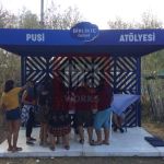 9, 11 Eylül 2018 tarihinde Van’da gerçekleştirilen Gezgin Fest Van etkinliğinde, Birlikte Güzel adı altında Puşi Atölyesi gerçekleştirdik. Üç gün süren etkinlikte katılımcılar Puşi Atölyesi standını hiç boş bırakmadılar. Yörede en çok kullanılan aksesuar olan puşi bu sefer gençlerin katıldığı bir festivale uyarlandı. Festivale ve firmaya özel olarak tasarlanan puşiler katılımcılara hediye edildi. Düz beyaz puşilerin üzerinde #BirlikteGüzel yazısı ile birlikte katılımcılara verilen çeşitli şablonlarda verildi. Katılımcılar renkli tekstil kalemleri ile kendi puşilerini yarattılar. Şablonları kullanarak puşileri çizmeye başlayan katılımcılar ortaya çok güzel görseller çıkardılar, puşileri çizerken şablona bağlı kalmak istemeyen katılımcılar hayal güçlerini kullanarak kendilerine özgü puşilerini çizerek tasarladılar. Katılımcıların çok eğlendiği atölyelerden biri olan Puşi Atölyesi onlara günün anlamını hatırlatan bir hatıra olarak kaldı. Üç günde toplam 350 katılımcıya ulaşılan Puşi Atölyesi’nde festivalin en dikkat çekici özelliklerinden biri oldu.