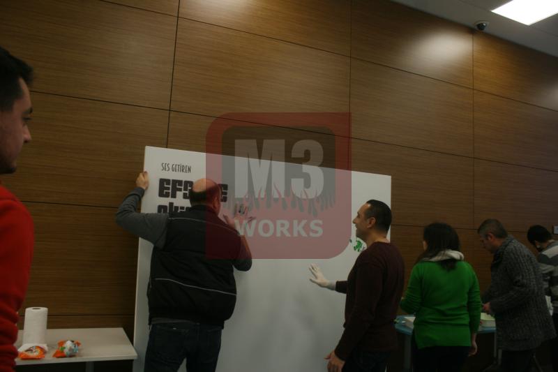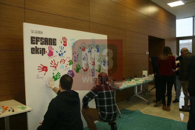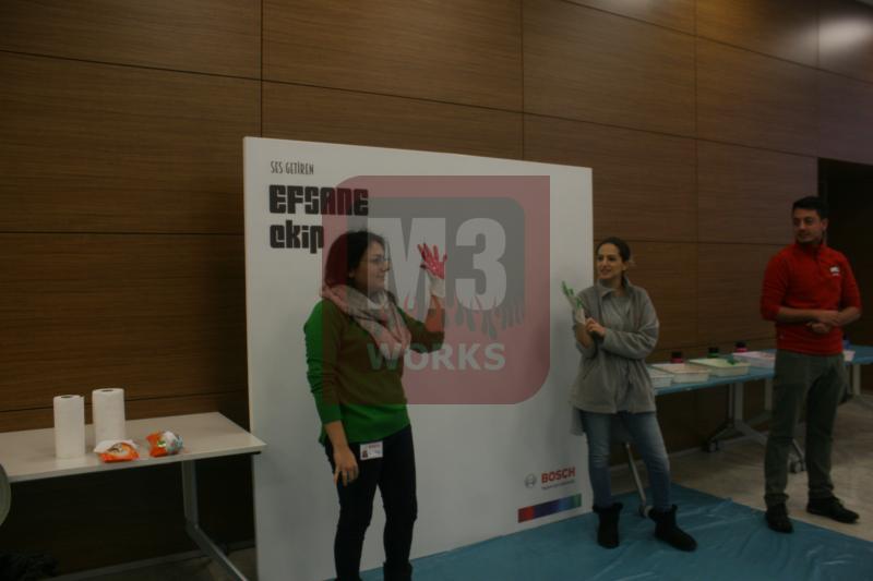 Bosch ekibi ile birlikte oldukça keyifli bir Elbirliği Tablosu aktivitesi gerçekleştirdik. Oldukça farklı bir aktivite gerçekleştiren Bosch ekibi takım olmanın, birlik ve beraberliğin önemini fark etti. Hep birlikte hareket ederek el izlerini tablo üzerine aktaran katılımcılar oldukça farklı bir aktivite gerçekleştiriyordu. Elbirliği Tablosu takım olmanın fark edilmesini sağlayan şirket içi bağlılığın en üst düzeye ulaşmasına olanak veren bir aktivitedir.