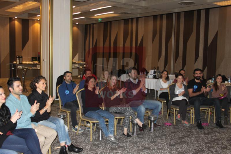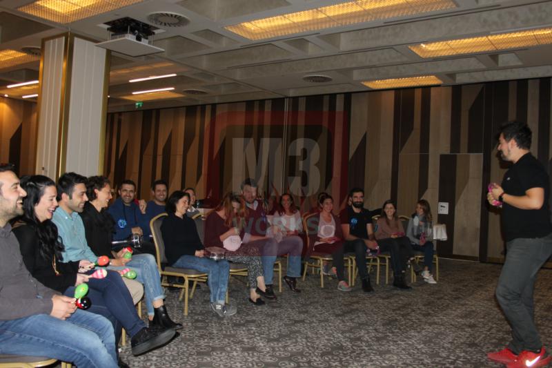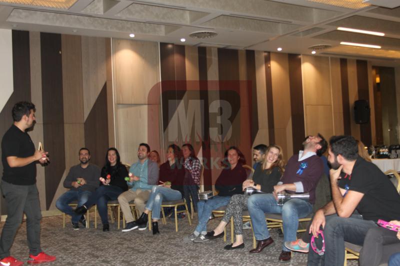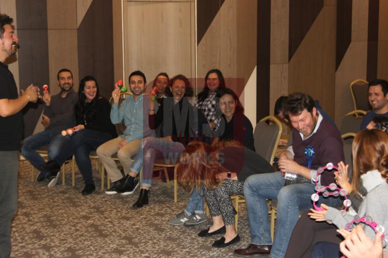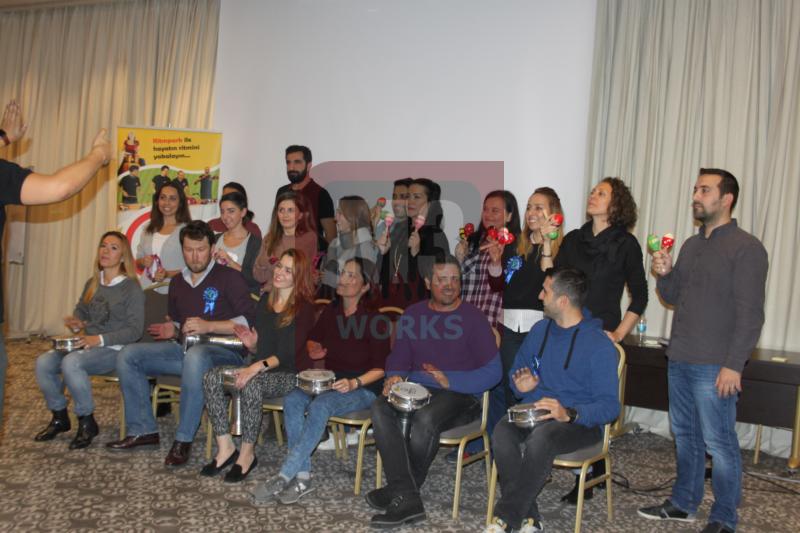 Birbirinden keyifli anların geçirildiği Ritm Motivasyon Atölyesi’nde katılımcılar aynı zaman da enstrümanlarını da çalmayı öğrendi. Tef, darbuka ve marakas kullanan katılımcılar basit ritmleri takım halinde çalabiliyordu. Böylece hem öğrenen hem de eğlenen Enerjisa ekibi halinden oldukça memnundu. Birbirinden keyifli dakikaların geçirildiği Ritm Motivasyon Atölyesi’nde sıra konser kaydına gelmişti. Gün boyunca çalıştıkları ritmleri konserde gibi bir kompozisyon halinde çalacak olan Enerjisa ekibiydi. Oldukça heyecanlı oldukları gözlemlenen katılımcılar ilk olarak birkaç prova kaydı aldı. Provalar sırasında yanlışlarını düzelten ve eksiklerini kapatan Enerjisa ekibi konser kaydına hazırdı. Eğitmenimizin talimatlarıyla birlikte konser kaydı başladı. Müthiş bir kayıt ortaya çıkaran Enerjisa ekibi kompozisyonu hatasız çaldı. Eğitmenimizi bile etkileyen bir performans sergileyen Enerjisa ekibi oldukça mutluydu. Ritm Motivasyon Atölyesi’nin sonuna geliniyordu. Katılımcılar unutulmaz dakikalar geçirmişti.