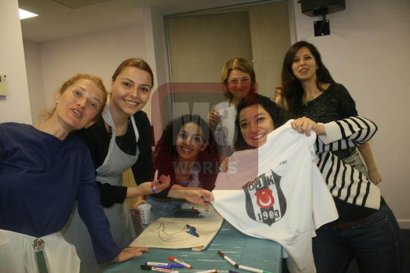 Hızla tshirtlerini yapmaya başlayan Groupama ekibi oldukça eğlenmeye başlamıştı. Hep birlikte hareket etmeye başlayan ve birbirleri ile iletişimde kalan katılımcılar için unutulmaz bir Yaratıcı Tişört ve Çanta Atölyesi gerçekleşiyordu. Böylece hep birbirleri ile iletişim halinde kalarak hareket eden katılımcılar iç iletişimlerini kuvvetlendirdi.