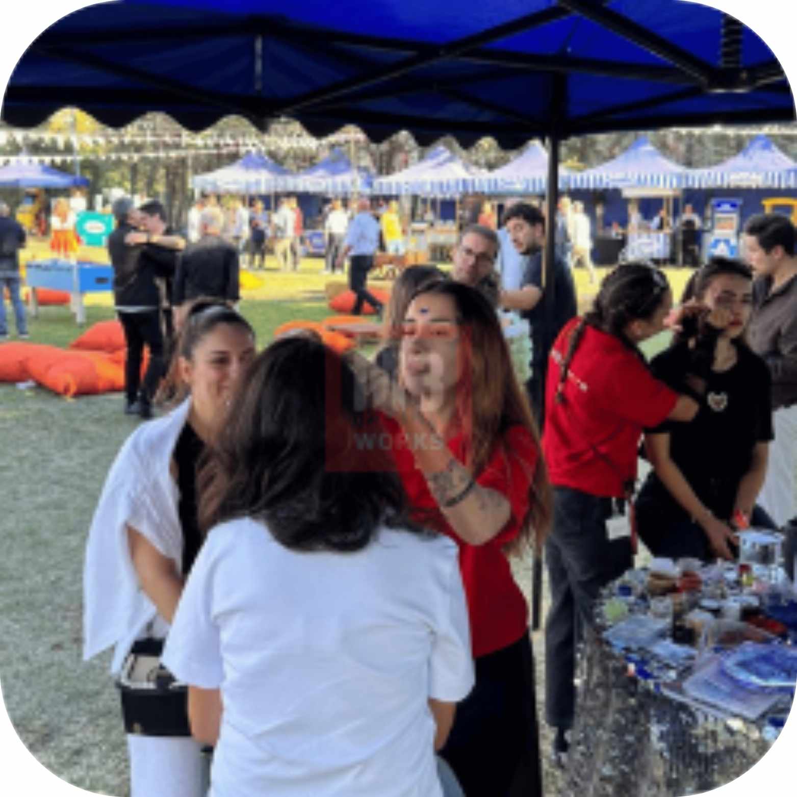 Işıltılı Makyaj Aktivitesi, markalar için etkinlik alanında güçlü bir etkileşim noktası yaratır. Katılımcılar bu alanda hem keyifli vakit geçirir hem de ortaya çıkan görünümleriyle fotoğraf çekimlerini ve sosyal medya paylaşımlarını artırarak etkinliğin dijital görünürlüğüne katkı sağlar.