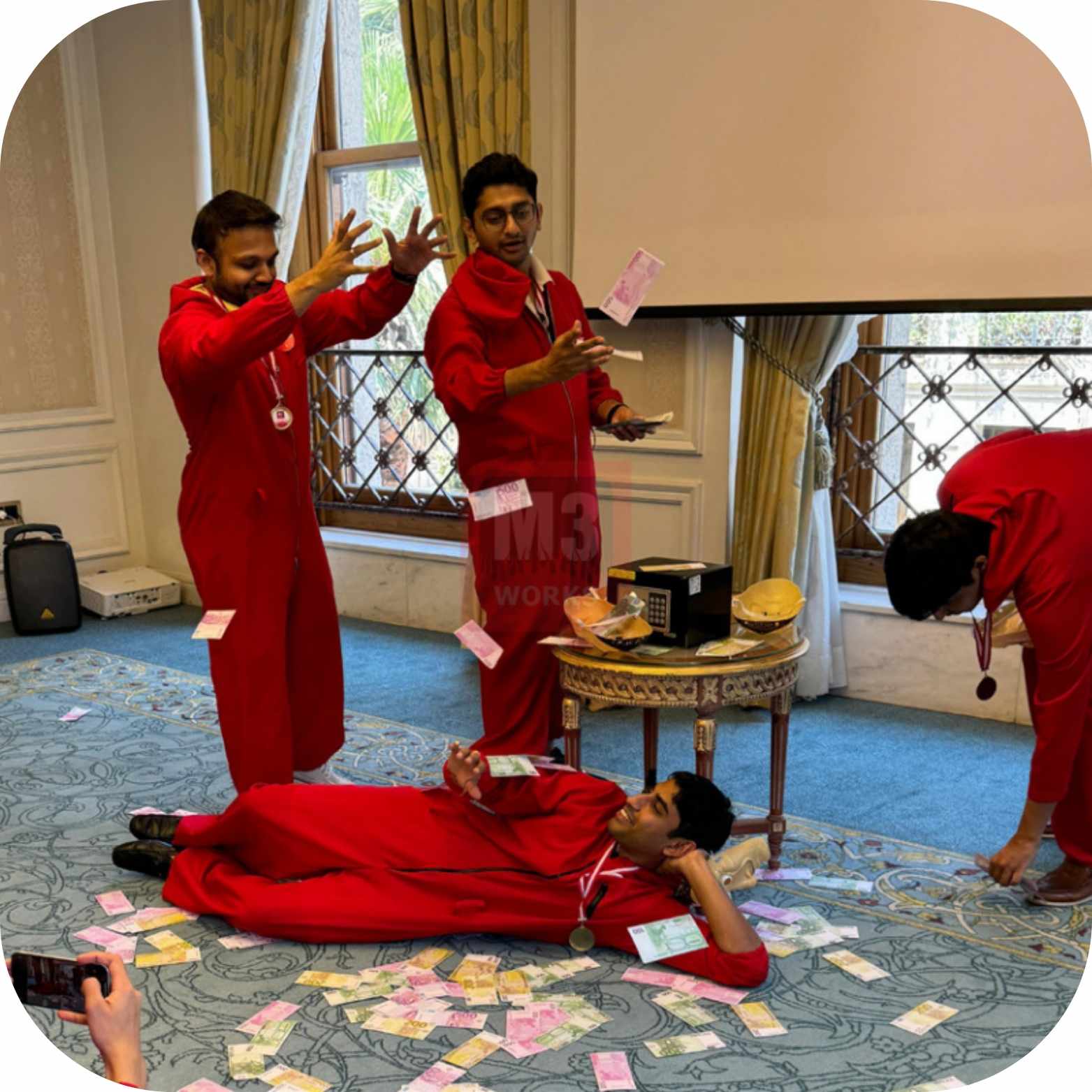 Popüler diziden ilham alan bu aksiyon dolu deneyim, stratejiyi ve takım ruhunu bir araya getiren sürükleyici bir takım aktivitesidir. Katılımcılar kostümlerini giyip sayaç çalışmaya başladığında adeta sahneye çıkar gibi oyuna dahil olur. Her ekip, süre dolmadan ipuçlarını takip ederek şifreli puzzle’ları çözmeli, gizli mekanizmaları bulmalı ve kasayı açarak darphaneyi “soymalıdır”.