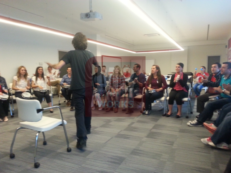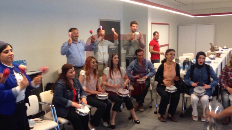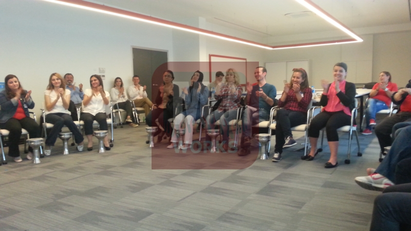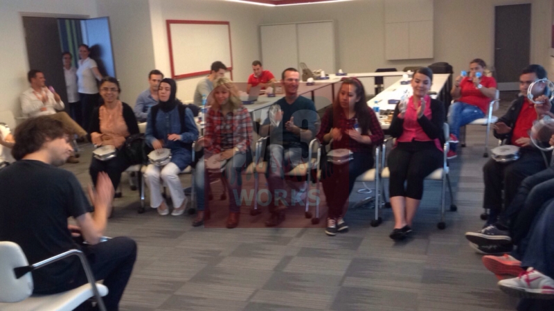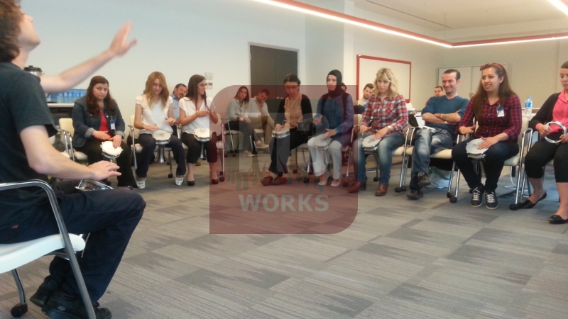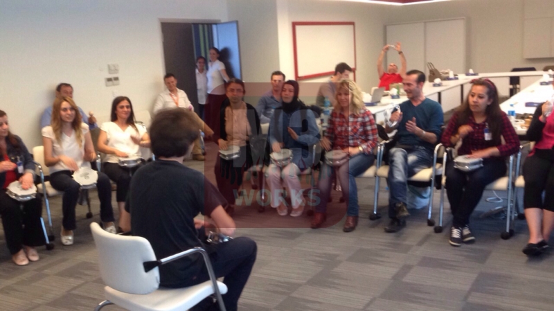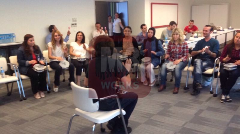M3 Works olarak 30 kişilik Philip Morris ekibine yapmış olduğumuz Ritm Motivasyon Atölyesi etkinliği katılımcılara hem keyifli dakikalar yaşattı hem de tam anlamıyla ekip olmanın önemini bir kez daha fark etmelerini sağladı. Etkinlikten haberleri olamayan Philip Morris ekibi toplantılara girerek geçirdikleri yoğun bir günün ardından yorgun ve enerjileri düşmüş bir haldeydiler. Eğitmenler eşliğinde yapılan Ritm Motivasyon Atölyesi etkinliği ekibin 3 farklı gruba ayrılıp; M3 Works asistanları tarafından önceden yerleştirilen darbuka, tef ve marakasların dağıtılması ile etkinliğe başlandı. Philip Morris ekibi ile etkinliğe başlamadan önce sahne alan eğitmenler küçük bir gösteri yaparak katılımcıların kulaklarının pasını sildiler ve birazdan katılımcıların nasıl bir gösteri yapacaklarını göstermiş oldular. Bu küçük ritim ve perküsyon gösterisinden sonra eğitmenin konuşmasıyla katılımcılar birkaç küçük egzersiz yaparak ısınmaya başladılar. Öncelikle enstrümanları tanıtıp onlar hakkında bilgi veren M3 Works eğitmeni daha sonra sırayla enstrümanları göstererek nasıl kullanabileceklerini anlatmaya başladı. Enstrümanların sahipleri eğitmenimiz eşliğinde tek tek öğrenirken aldıkları keyif ve öğrenme heyecanı Philip Morris ekibinin gülüşlerinden anlaşılıyordu. Belirli bir noktaya geldikten sonra ortaya çıkan kompozisyonu çalışan katılımcılar zorda olsa içlerindeki müzisyen ruhlarını ortaya çıkarmayı başardılar.