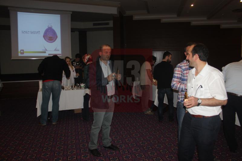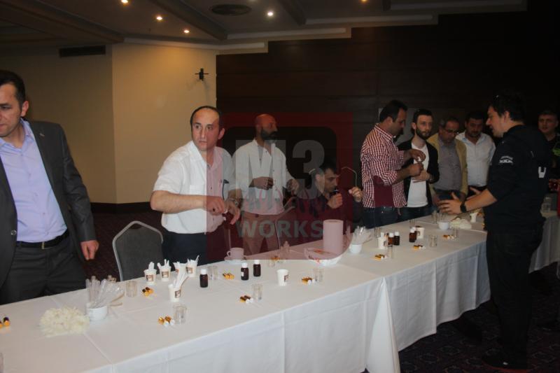 11 Mayıs 2016 Çarşamba günü Philip Morris ekibi ile birlikte Parfüm Atölyesi’ni gerçekleştirdik. 35 kişilik bir katılımın olduğu Parfüm Atölyesi’nde birbirinden keyifli anlar geçirildi. Kocaeli Emex Otel’de bir araya geldiğimiz Philip Morris ekibi Parfüm Atölyesi için oldukça heyecanlıydı. Kendileri için parfümler yapmayı öğrenecek olan katılımcılar bir an önce Parfüm Atölyesi’ne başlamak istiyordu. Öncelikle kısa bir sunumları olan Philip Morris ekibi ardından Parfüm Atölyesi’ne geçecekti. O sırada M3 Works asistanları da Parfüm Atölyesi’nin hazırlıklarını tamamlıyordu.