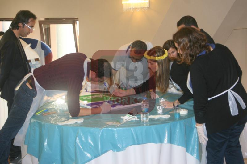 M3 Works ekibi erkenden bütün hazırlıklarını tamamlamıştı. Ekibin salona alınmasıyla birlikte Logo Tablosu etkinliği başlamış oldu. Tualler ve gerekli olan bütün malzemeler her bir masanın üzerine dağıtılmıştı. İlk aşamada takımlara ayrılan ekip hızla masaların başına geçti ve tuallerin çizimlerini yapmaya başladı.