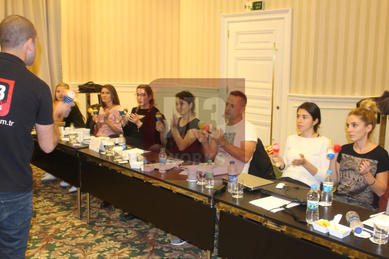M3 Works olarak 25 kişilik Vitra ekibine yapmış olduğumuz Ritm Motivasyon Atölyesi etkinliği katılımcılara hem keyifli dakikalar yaşattı hem de tam anlamıyla ekip olmanın önemini bir kez daha fark etmelerini sağladı. Etkinlikten haberleri olamayan Vitra ekibi toplantılara girerek geçirdikleri yoğun bir günün ardından yorgun ve enerjileri düşmüş bir haldeydiler. Eğitmenler eşliğinde yapılan Ritm Motivasyon Atölyesi etkinliği ekibin 3 farklı gruba ayrılıp; M3 Works asistanları tarafından önceden yerleştirilen darbuka, tef ve marakasların dağıtılması ile etkinliğe başlandı. Vitra ekibi ile etkinliğe başlamadan önce sahne alan eğitmenler küçük bir gösteri yaparak katılımcıların kulaklarının pasını sildiler ve birazdan katılımcıların nasıl bir gösteri yapacaklarını göstermiş oldular. Bu küçük ritim ve perküsyon gösterisinden sonra eğitmenin konuşmasıyla katılımcılar birkaç küçük egzersiz yaparak ısınmaya başladılar. Öncelikle enstrümanları tanıtıp onlar hakkında bilgi veren M3 Works eğitmeni daha sonra sırayla enstrümanları göstererek nasıl kullanabileceklerini anlatmaya başladı. Enstrümanların sahipleri eğitmenimiz eşliğinde tek tek öğrenirken aldıkları keyif ve öğrenme heyecanı Vitra ekibinin gülüşlerinden anlaşılıyordu. Belirli bir noktaya geldikten sonra ortaya çıkan kompozisyonu çalışan katılımcılar zorda olsa içlerindeki müzisyen ruhlarını ortaya çıkarmayı başardılar.